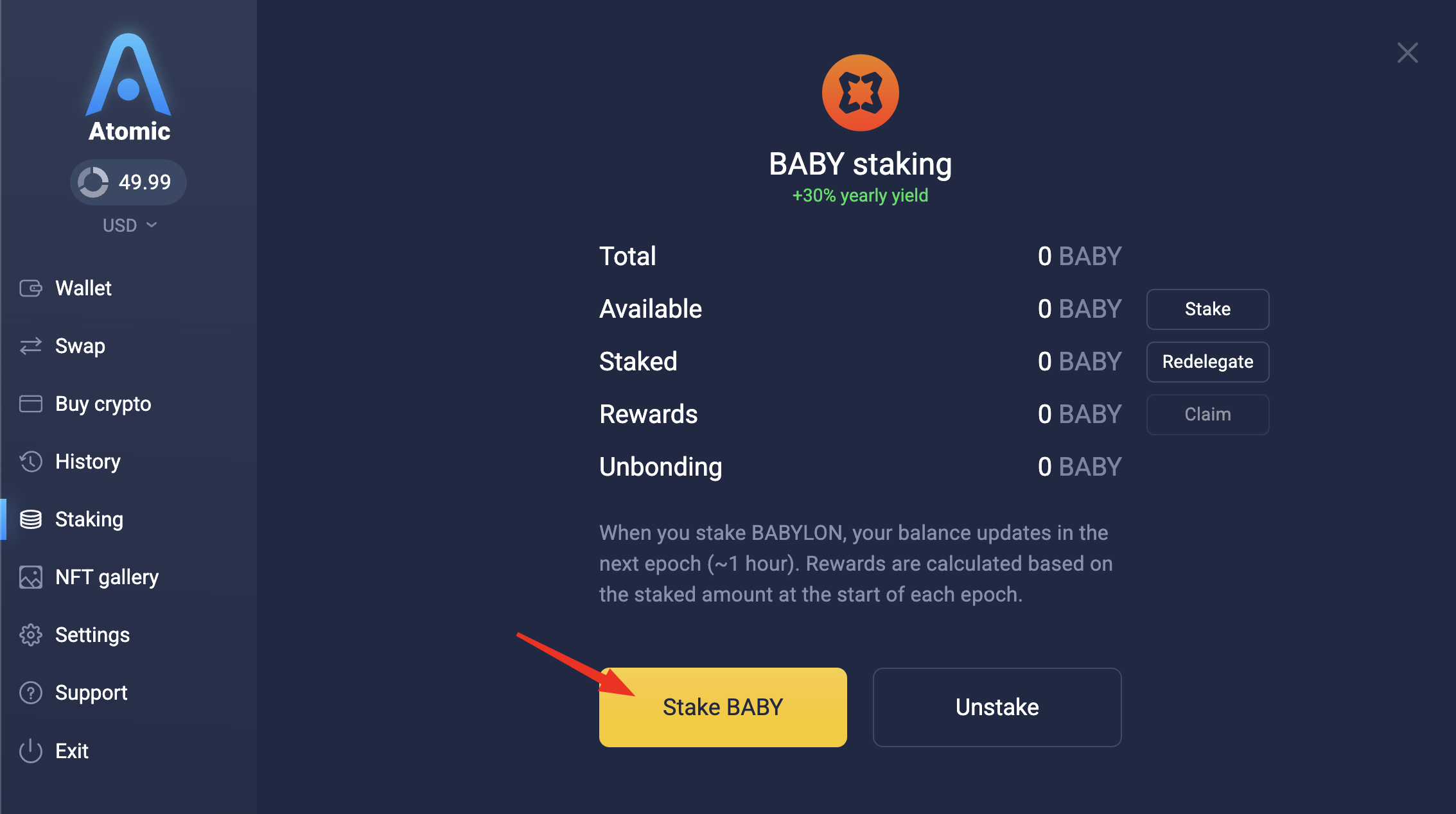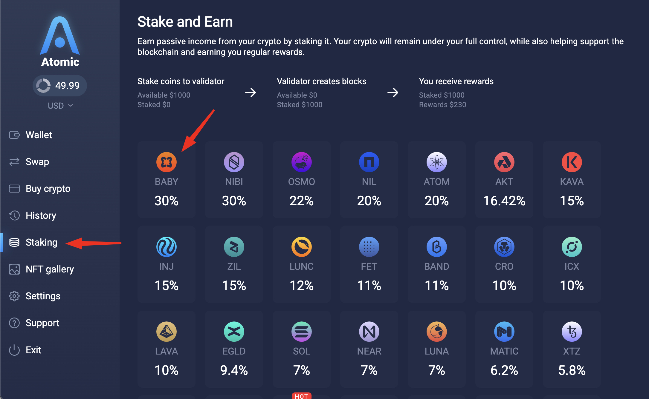 Stake your BABY with Atomic Wallet to earn interest on your deposit! In this article, we’ll walk you through everything you need to know to start staking your BABY and earning rewards.