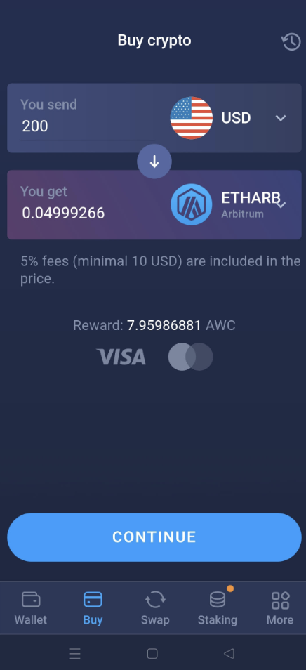 - Find to the 'Buy Crypto' tab by tapping the 'Buy' button at the bottom panel;