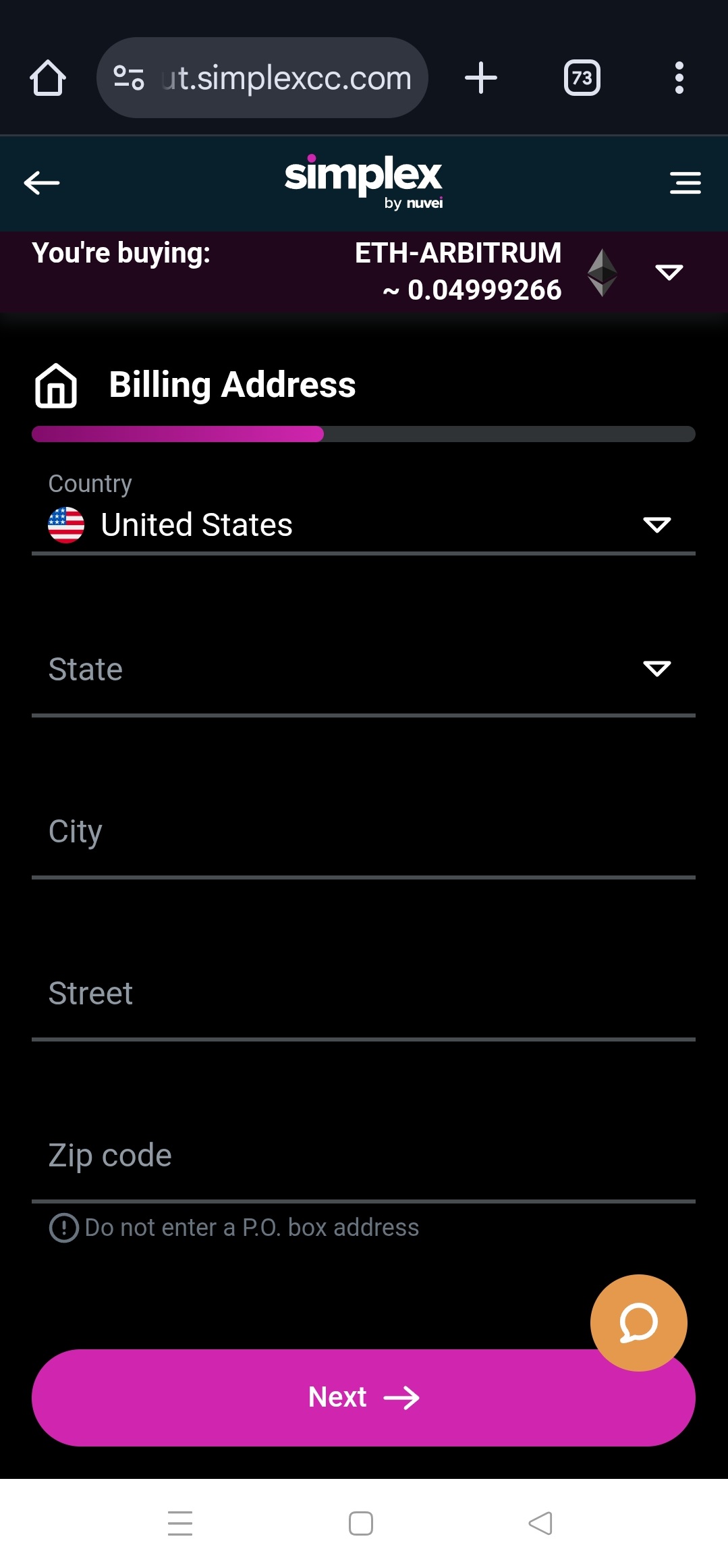 - Choose a payment method. You can also use a chat function to chat with Simplex agents by clicking on the sign of a chat in the bottom right corner;